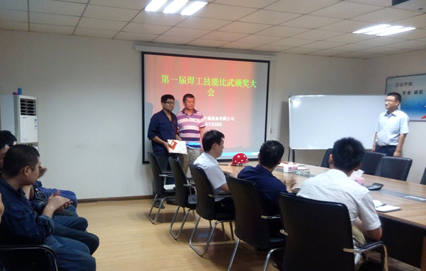 經過緊張的打分統計工作, 終結果終于浮出水面,一等獎王杰;二等獎趙可玉、郝世亮;三等獎劉振召、趙偉、曹林林,當魯總現場大聲公布著此次獲獎人員名單上臺領獎時,臺下爆發出陣陣掌聲,是啊,臺式一分鐘臺下十年過,好成績是與個人努力分不開的,場下,不是工人師傅也互相切磋起來。 后魯總號召大家都要建立不斷學習不斷進步的態度,才能滿足公司的發展需要,人人都要做行業的大能手。
